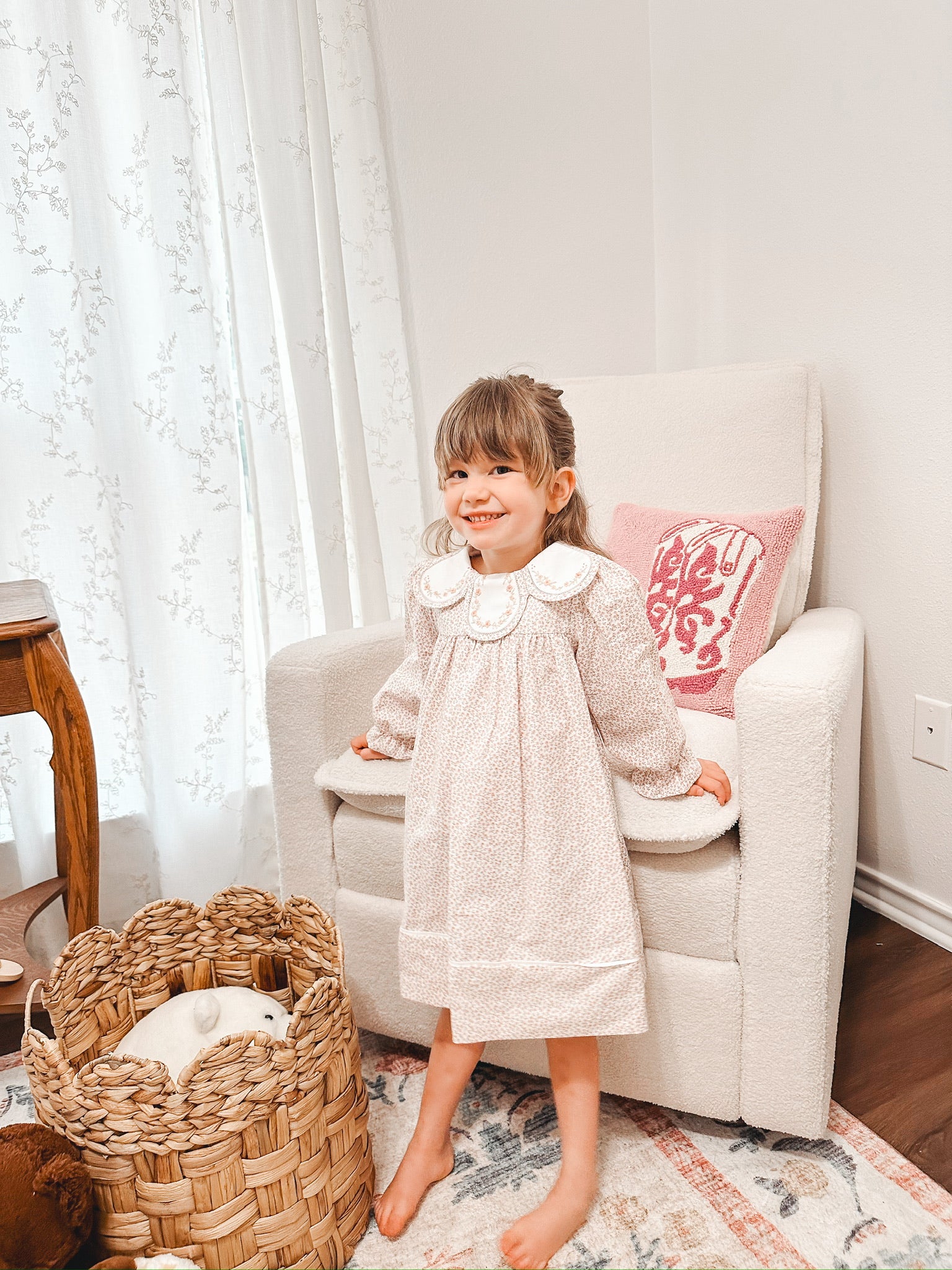 This adorable BB Blooms Petal Float Dress by Sophie and Lucas features a stunning petal-shaped collar with delicate embroidery and hemstitching. The charming floral print and matching bloomers complete this sweet outfit.