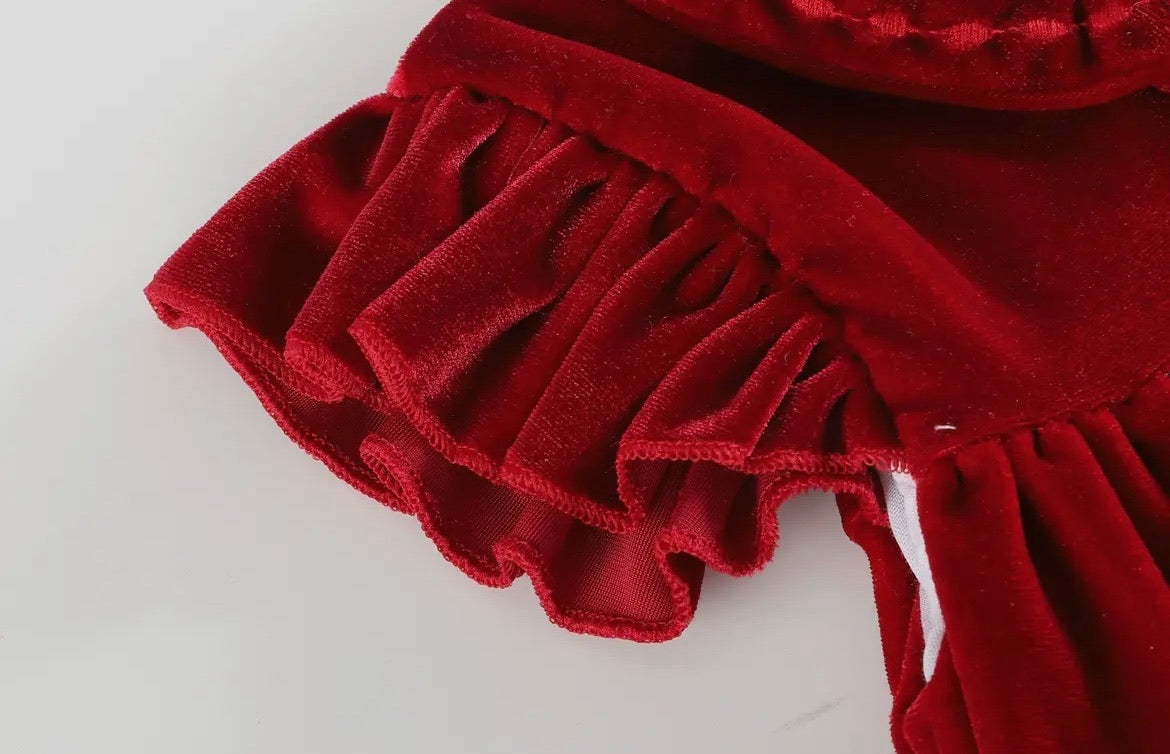 Charming and cute! Complete your little one's closet with this adorable red velour ruffle dress made of 100% soft cotton. Perfect for festive days, it's ready for picture-perfect moments!
