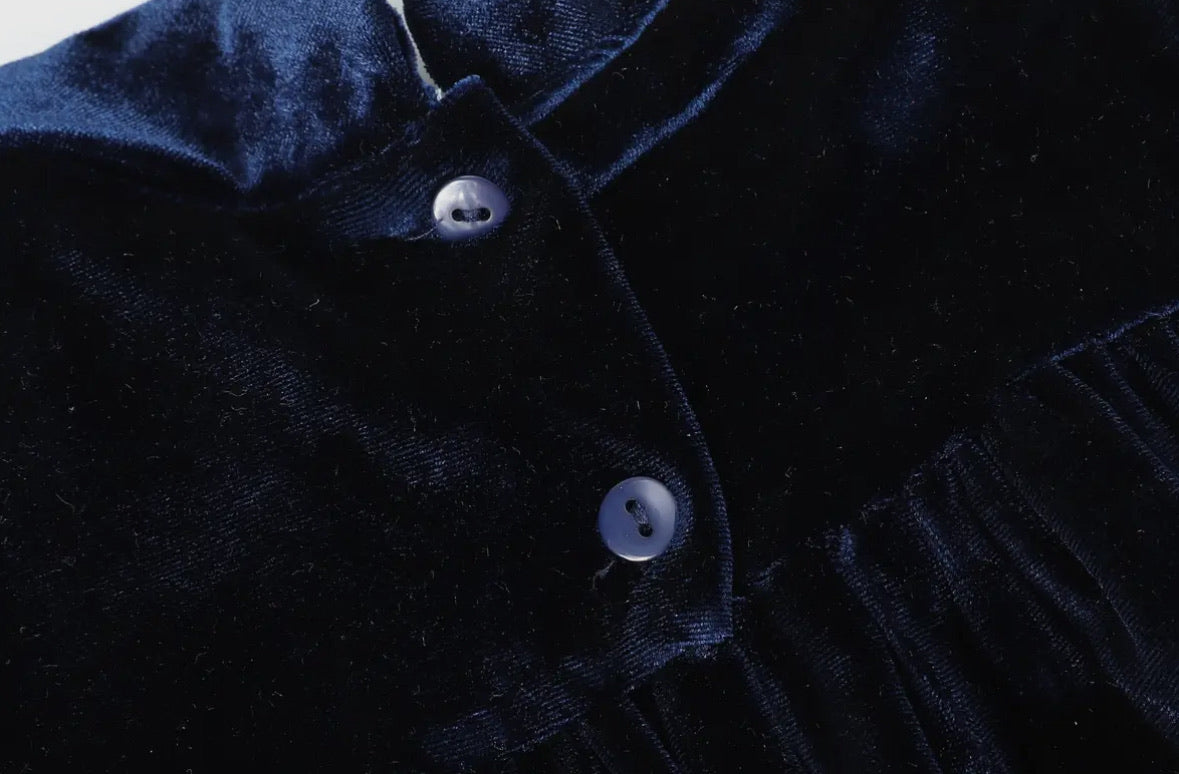 Stunning and Sweet! This beautiful navy blue velour dress. From twirling and dancing the day away to holiday parties with family; no matter the occasion she will be looking picture-perfect!